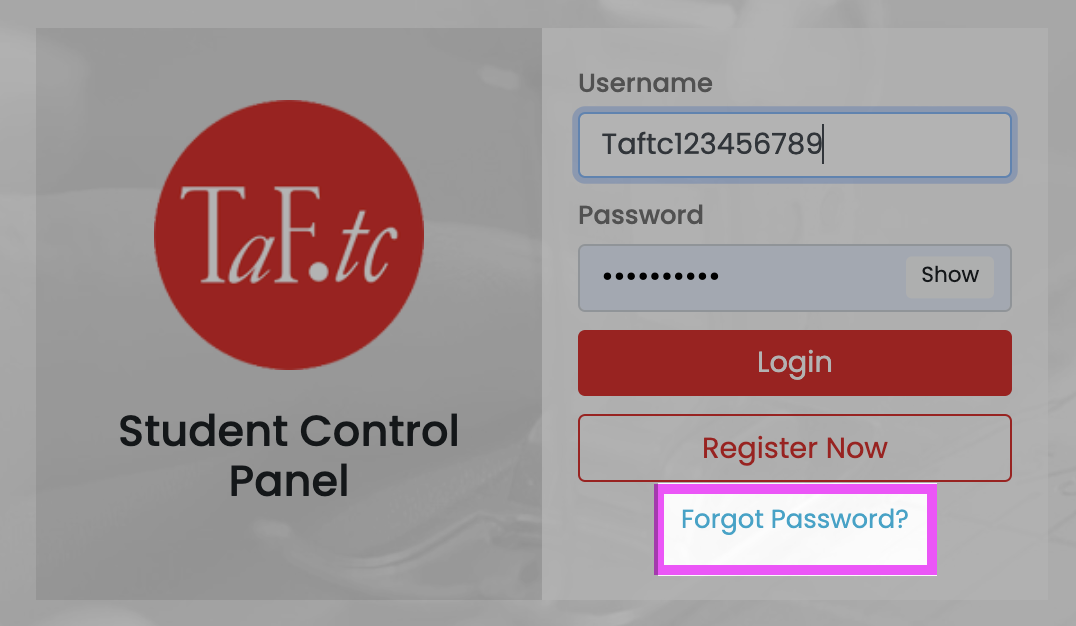 - Go to https://www.taftc.org/student and log in using your credentials