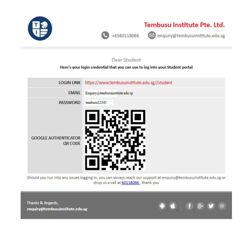 Upon signing up you will receive an email with your login credentials from “enquiry@tembusuinstitute.edu.sg”